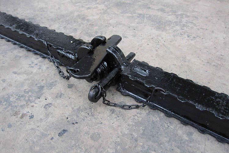 鉸接頂梁是煤礦巷道中常用的支護(hù)頂梁,其長(zhǎng)度比較短,帶有鉸接連接頭,它可以與帶有鉸接頂蓋的各種類型的單體液壓支柱配合使用組成金屬支架,供煤礦的水平及緩傾斜回采工作面支護(hù)使用。鉸接頂梁能懸臂支護(hù)工作面輸送機(jī)上面的頂板,使煤壁與支柱間有較大的空間,從而為采用新型采煤機(jī)械和可彎曲輸送機(jī),實(shí)現(xiàn)采煤機(jī)械化提供條件。