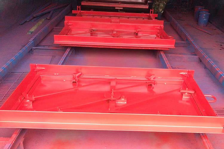 避難硐室密閉門使用對稱的方式進行安裝,它的每一個安裝件都是使用鋼材料來焊接成的。避難硐室密閉門的門扇是由井字結構來進行焊接的,反風的主要裝置是采用鋼管來插拴的,安裝的時候在合頁處涂上潤滑油,保證使用的靈活性。斜風井防爆門關門時,各部件反向擺動,到關閉狀態時成矩形狀態。